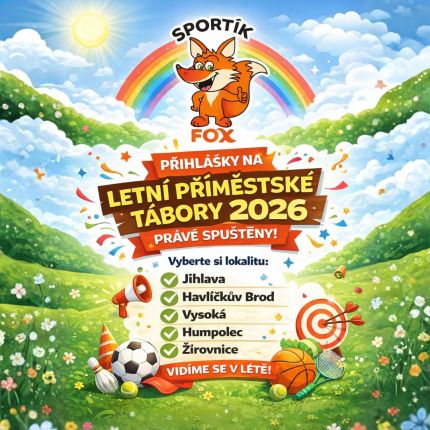 Sportík Fox již několik let organizuje příměstské tábory v Jihlavě, Havlíčkově Brodě a na Vysoké u HB. A to jak pro děti školního tak i předškolního věku. Naše příměstské tábory jsou zaměřené i na sportovní aktivity, inline brusle a cyklo kempy.